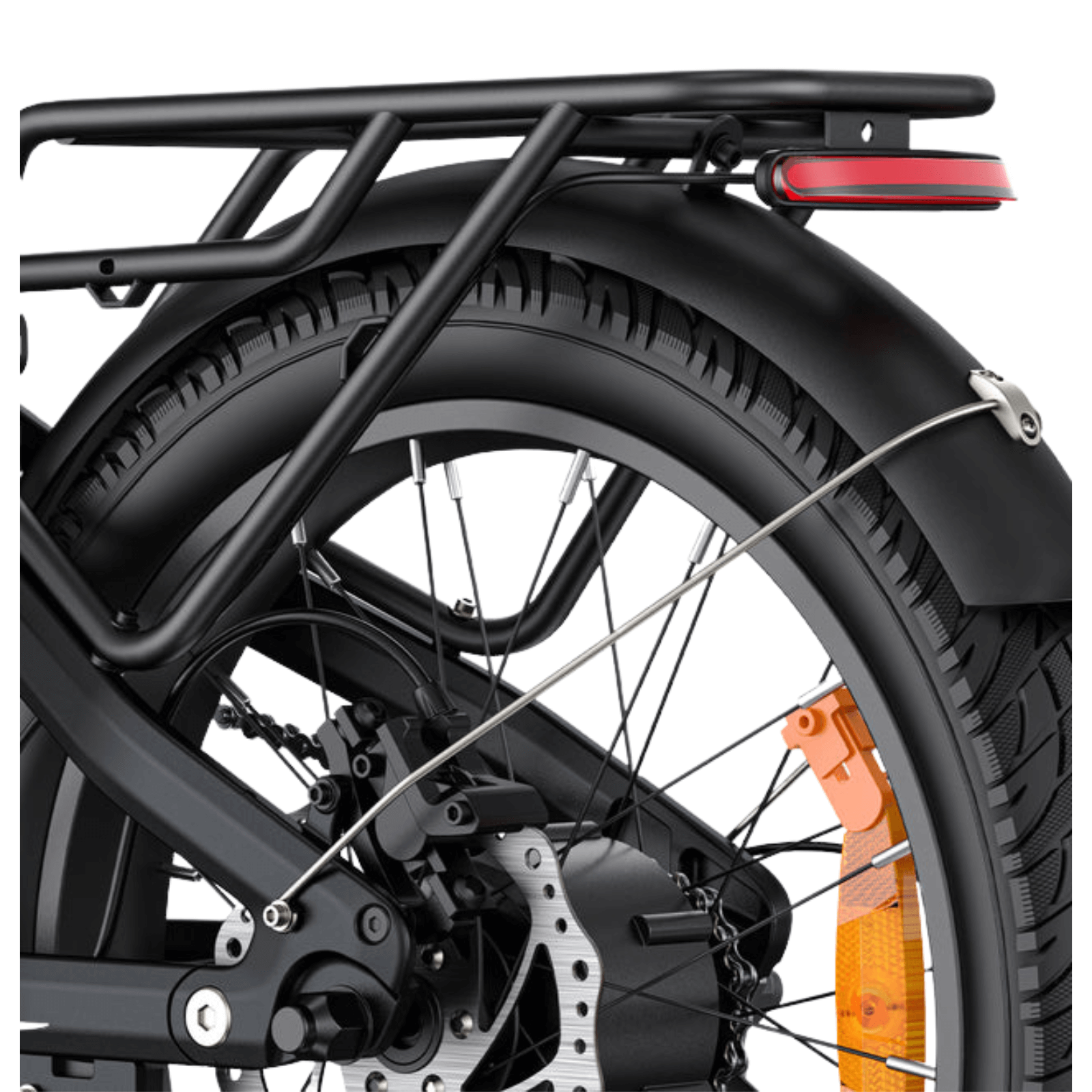 Sturdy,spacious rear rack let you carry groceries, gear, or