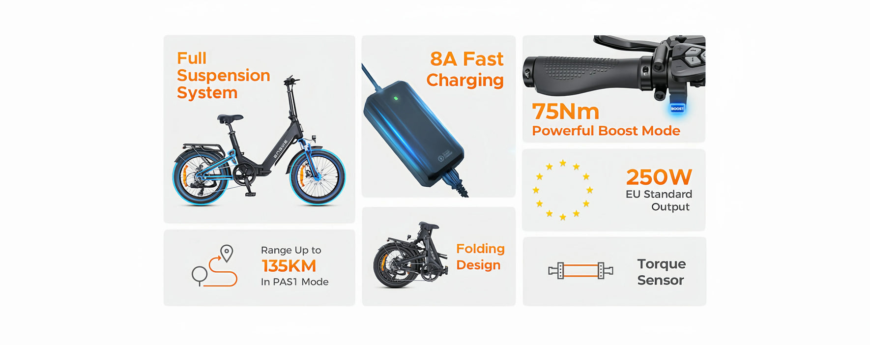 | Charger: 54.6V 8A Output | Front Light: 30 Lux with Integrated E-Horn |