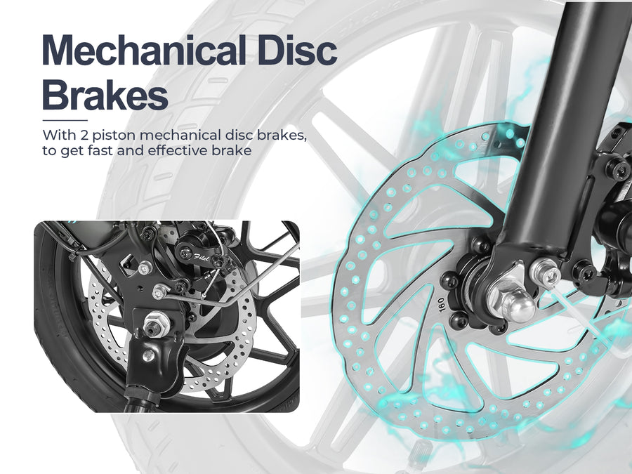 An e-bike equipped with mechanical disc brakes combines the efficiency and convenience of an electric motor with the reliable stopping power of mechanical disc brakes.
